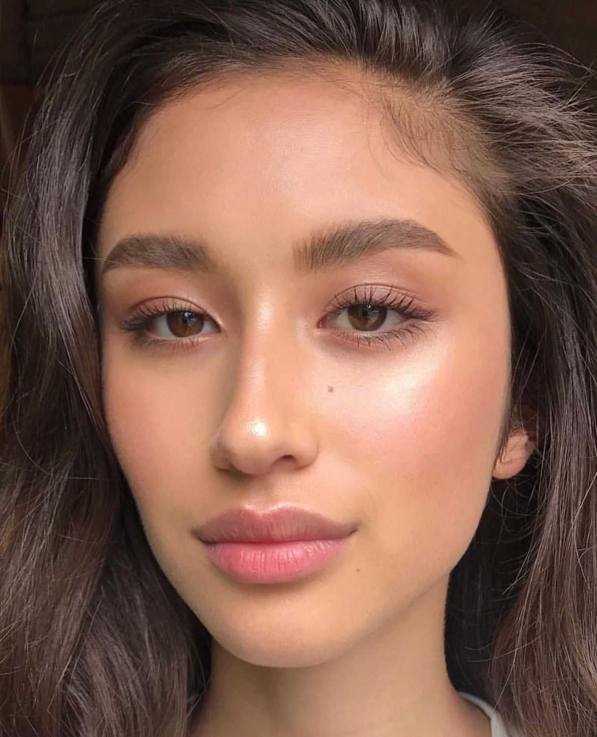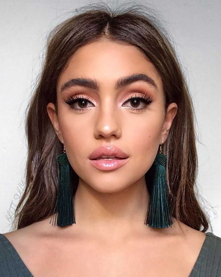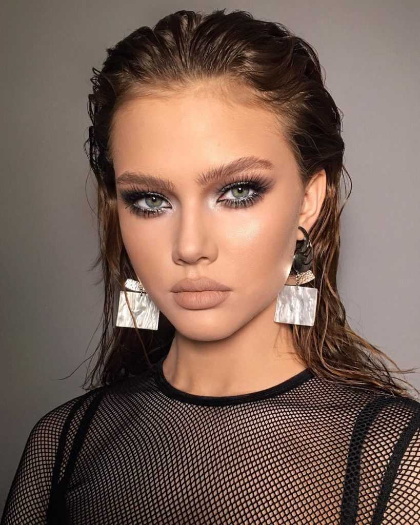 Современный макияж должен быть максимально естественных телесных тонов. Светлые тени и нюдовая помада используются в образе одновременно. Получается своего рода макияж без макияжа, который и является безусловным трендом.