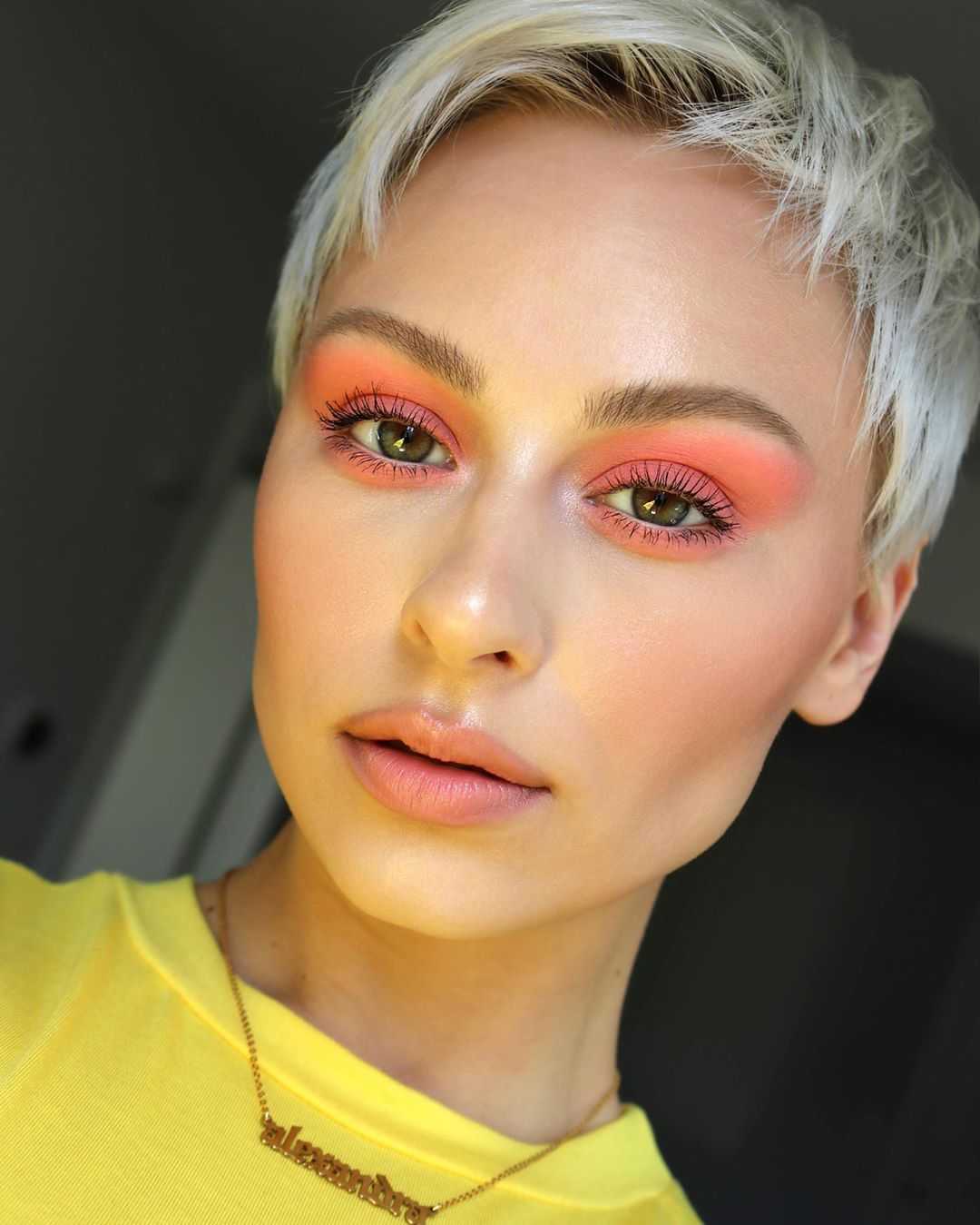 Примечательно, что в новом 2021-м году нюдовая помада получила необычную интерпретацию. Если ранее она использовалась в основном в совокупности с ярким макияжем глаз или смоки-айз, то в новом году предлагается выполнить макияж в нежных пастельных оттенках.