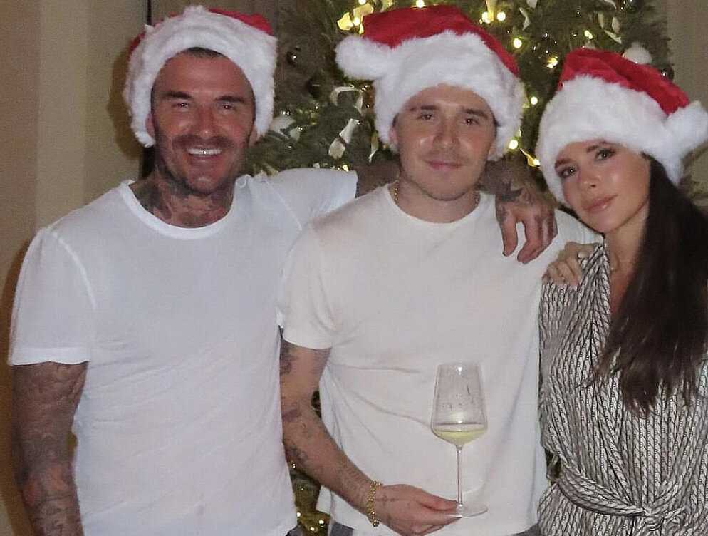 Семья Дэвида и Виктории Бекхэм закатила рождественскую вечеринку в кругу родных. Для празднования семейство нарядилось в одинаковые пижамы и колпаки Санты-Клауса. Одна Виктория выделилась и надела стильный халатик. Собрались все дети, кроме среднего сына Ромео. Он решил отметить вместе с друзьями.